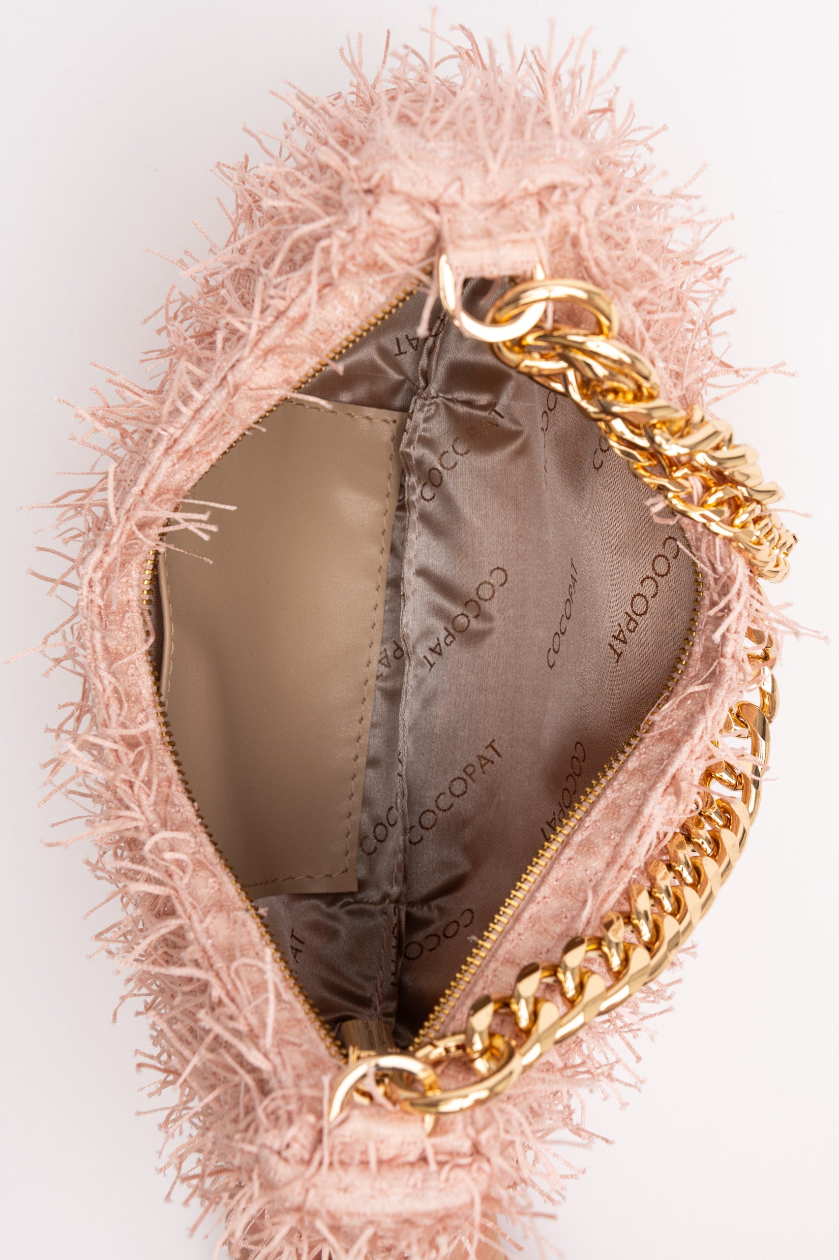 Zlatni lanac i zlatni detalji daju dozu luksuza, dok prepoznatljiv CP Cocopat ukras koji visi naglašava jedinstven identitet brenda.