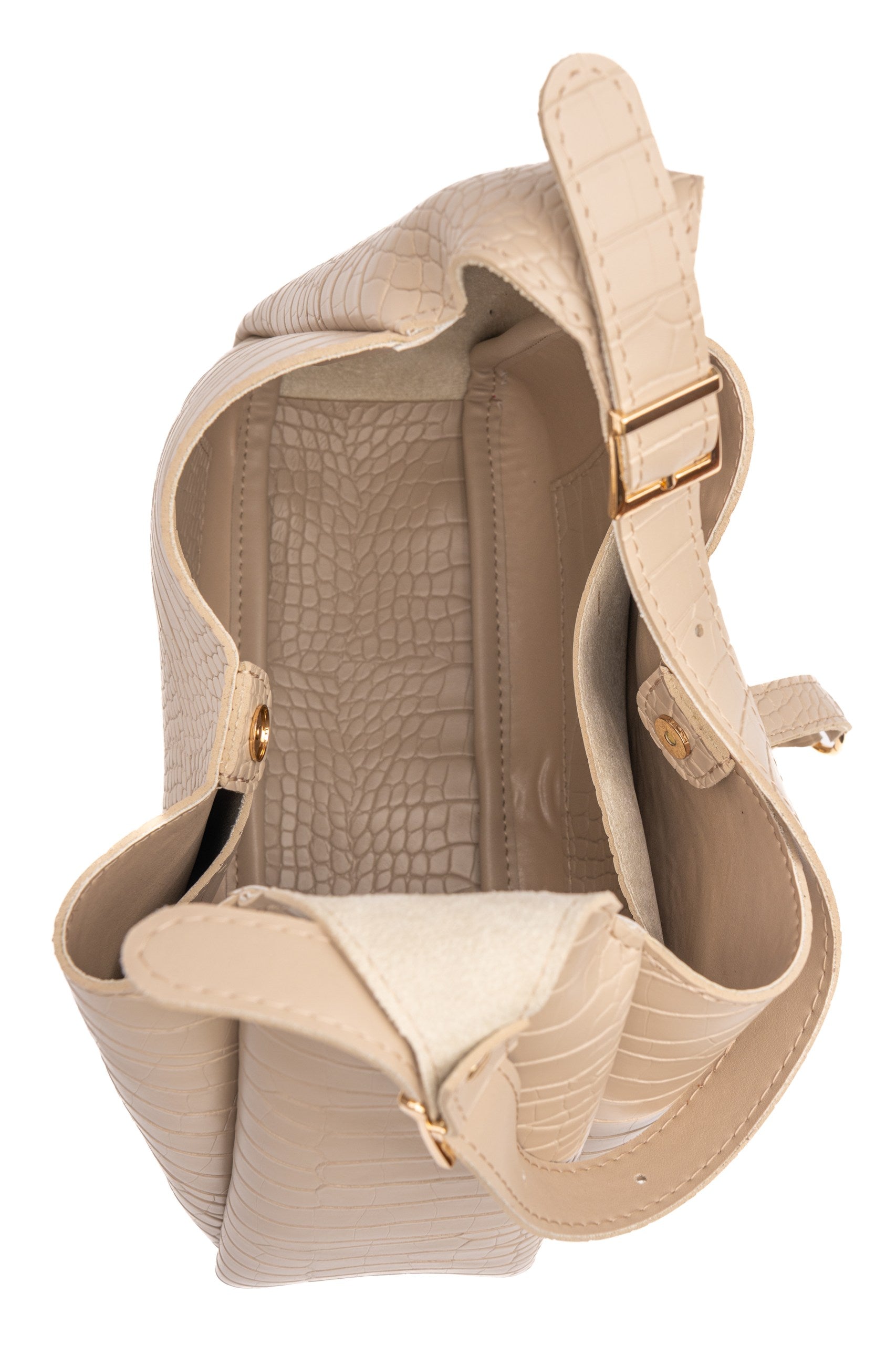 Zatvara se magnetom i preklopom s utisnutim logom, a podesiva ručka omogućuje nošenje na tri načina: na ramenu, preko tijela ili u ruci.